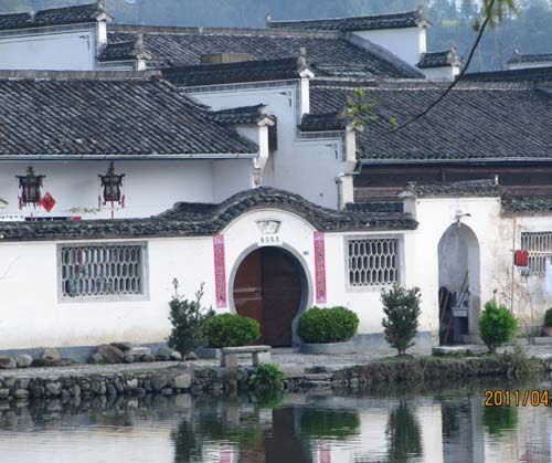 4月4日,早6點(diǎn)我們?cè)俅纬霭l(fā),這次目的地是“宏村”——中國(guó)最美麗的鄉(xiāng)村之一。進(jìn)入宏村,首先進(jìn)入眼簾的就是一灣湖水,如“半月”包住村莊建筑,很多人在湖邊寫(xiě)生。湖水中央,一座小拱橋,橋兩端有細(xì)長(zhǎng)的石質(zhì)小路連接湖兩岸。整個(gè)湖就像一把彎弓搭箭,指向村外。